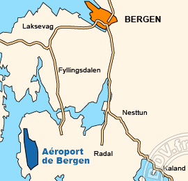 L'aéroport se trouve à 17,2 kilomètres au sud-ouest du centre de Bergen.